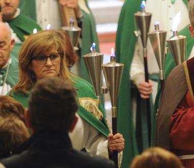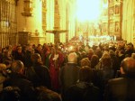 Aunque estaba previsto celebrarse en el Castillo, finalmente lo tuvimos en la catedral debido a la lluvia. La parroquia contribuyó a la organización con 12 fieles que, con antorchas y vestes adecuadas para la celebración, acompañaron al Crucifijo que encabezaba la procesión. Como se ve en las imágenes, cerraba el grupo otro devoto -también de nuestra parroquia- con la cruz a cuestas.