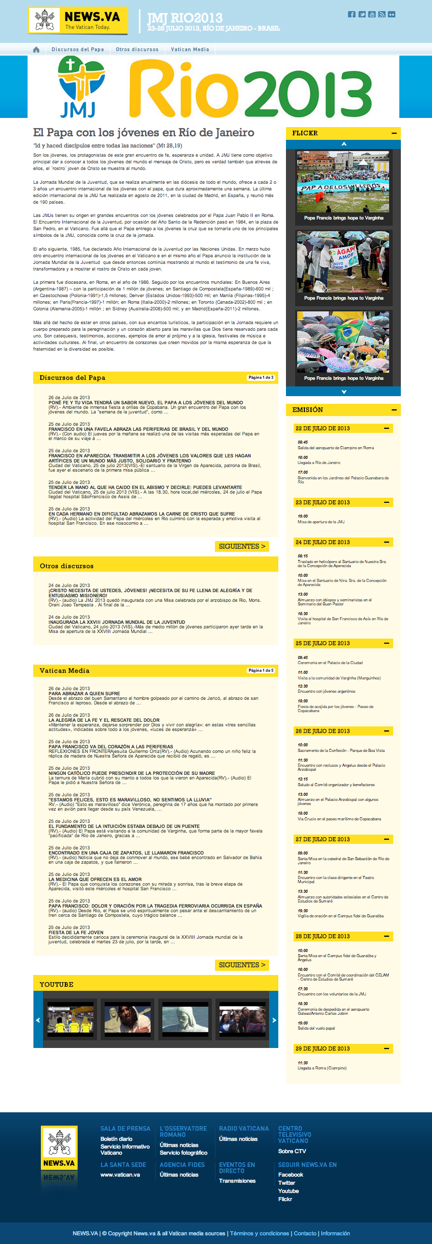 Como sabéis y ya venimos anunciando, durante estos días se está celebrando la Jornada Mundial de la Juventud (JMJ) 2013 en Río de Janeiro. Son miles los jóvenes congregados alrededor de la figura del Papa Francisco, quien está aprovechando el encuentro para llenar de aspiraciones nobles y esperanza a la juventud venida de todos los rincones del mundo.