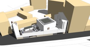 La futura Parroquia -más clara en la imagen- rodeada por los edificios que se proyectan en la zona.