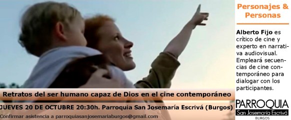 El jueves 20 de octubre a las 20:30h tendremos una charla-coloquio con el crítico de cine Alberto Fijo, que con el título «Personajes & Personas» hablará de los retratos del ser humano capaz de Dios en el cine contemporáneo.