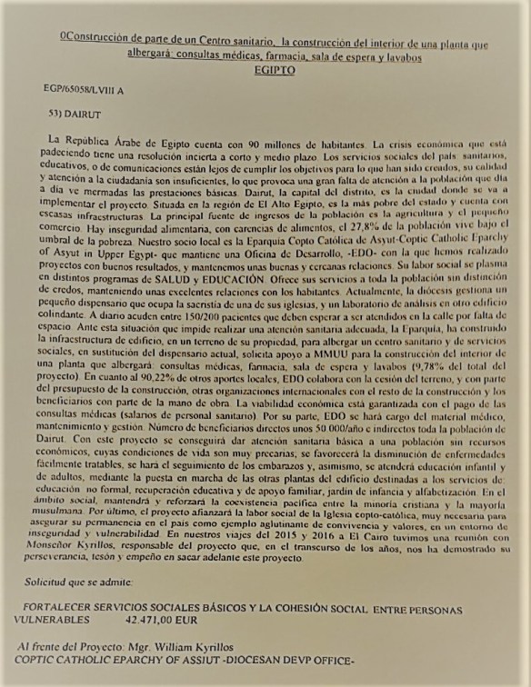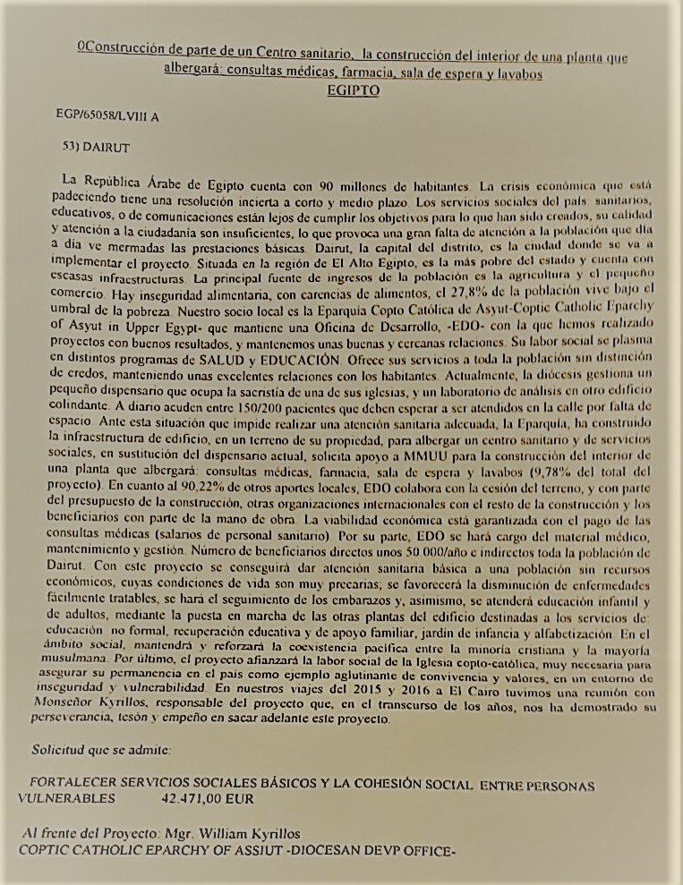 A nuestro arciprestazgo se le ha encomendado un proyecto de construcción de parte de un centro sanitario en Egipto.Adjuntamos descripción del proyecto: