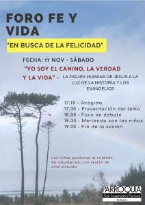 El mes pasado dialogamos sobre el significado de la felicidad para cada uno de nosotros. Y nos planteamos afrontar su búsqueda desde la propuesta cristiana recogida en las palabras de Jesús: Yo soy el Camino, la Verdad y la Vida. Esto nos conduce, como punto de partida, a profundizar en el conocimiento de la persona -sus hechos, sus palabras- de Jesús de Nazaret, y empezar a recorrer ese itinerario que nos promete encontrar el sentido de nuestra vida y, entonces, la felicidad que todos ansiamos. Esto es lo que nos proponemos en la segunda edición de nuestro Foro, abierto a todos.