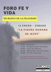El próximo día 19, sábado tendremos una nueva sesión de esta actividad abierta a todos los interesados donde pretendemos acercarnos a la «fuente de la felicidad«. Hemos escogido la hoja de ruta de Cristo, Camino, Verdad y Vida. Ese día avanzaremos en el conocimiento de su vida entre nosotros. A las 17:15h en la parroquia: habrá servicio de cuidado de los pequeños mientras los mayores dialogan. Al final, 18:30h tomaremos una meriendilla. Hay material disponible: los que no lo habéis recibido podéis solicitarlo en la parroquia o a Luis Fidel: 627717779