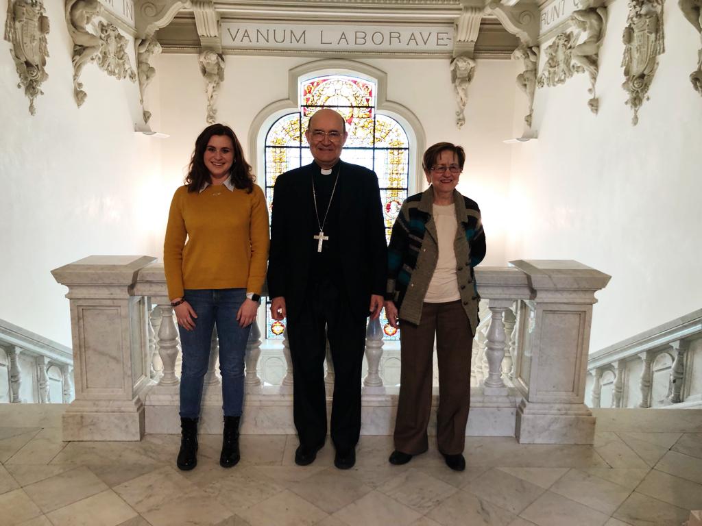 Brigilda y Conchita, su catequista, fueron recibidas por D. Fidel en la Casa de la Iglesia, que departió con ellas durante un buen rato.