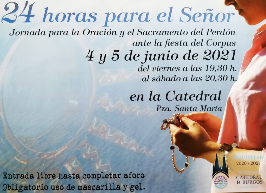 En el contexto del Año Jubilar, y como preparación para la Solemnidad del Corpus Christi, la Catedral acogerá estas 24 horas dedicadas al Señor, con Adoración Eucarística y Confesiones ininterrumpidas. Empezarán el próximo viernes 4 a las 19:30h hasta las 20:30h del sábado 5, incluyendo la Misa de las 19:30h de este día. La parroquia tiene asignado el turno de 17 a 18h del sábado.