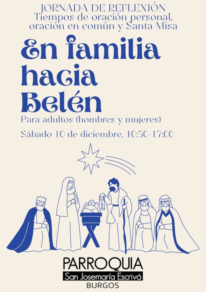 Jornada de reflexión Posted on 7 de diciembre de 2022 por parroquiasanjosemariabu Este sábado tendremos una jornada de oración y convivencia en la parroquia, para prepararnos un poco más, espiritualmente, para la Navidad: también nos gustaría que participaseis los de Fe y Vida. La comida será compartiendo lo que cada uno lleve. Anímate a compartirlo: Haz clic para enviar un enlace por correo electrónico a un amigo (Se abre en una ventana nueva) Correo electrónico Haz clic para compartir en WhatsApp (Se abre en una ventana nueva) WhatsApp Haz clic para compartir en X (Se abre en una ventana nueva) X Haz clic para compartir en Facebook (Se abre en una ventana nueva) Facebook Haz clic para imprimir (Se abre en una ventana nueva) Imprimir Me gusta Cargando... Relacionado