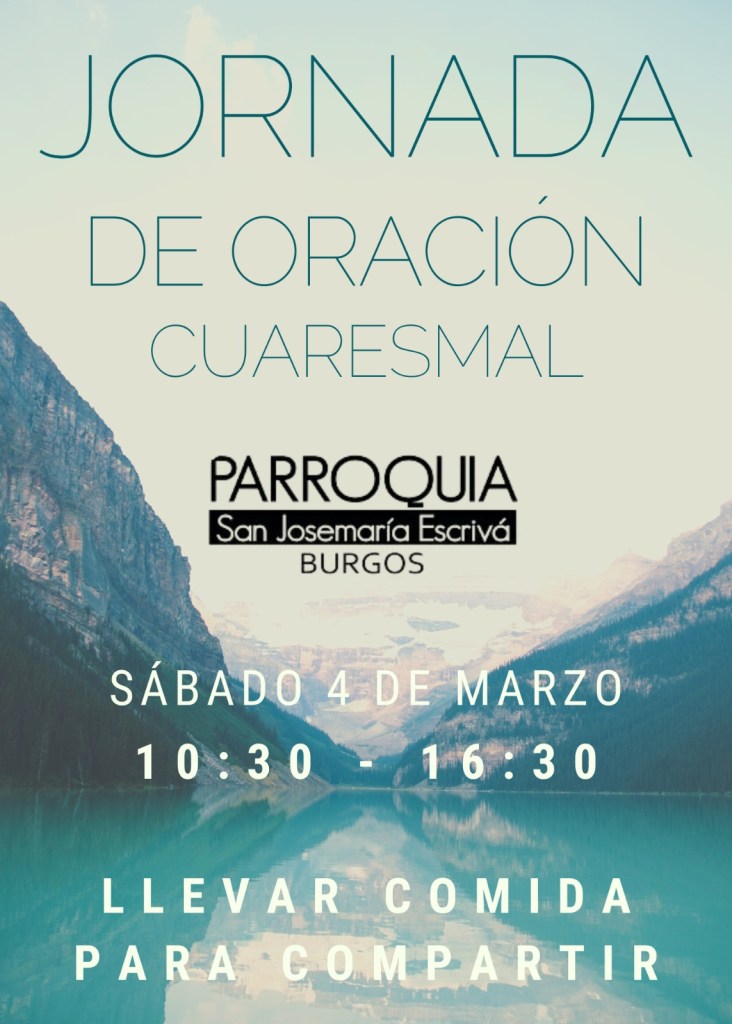 El sábado 4 tendremos una Jornada de reflexión cuaresmal para adultos en la parroquia. Comenzará a las 10:30h con una charla de presentación, habrá ratos de oración en común, de silencio y de compartir. Comeremos a las 14h; traed material para compartir. Si queréis que atendamos a vuestros hijos pequeños, comunicádnoslo antes del jueves.