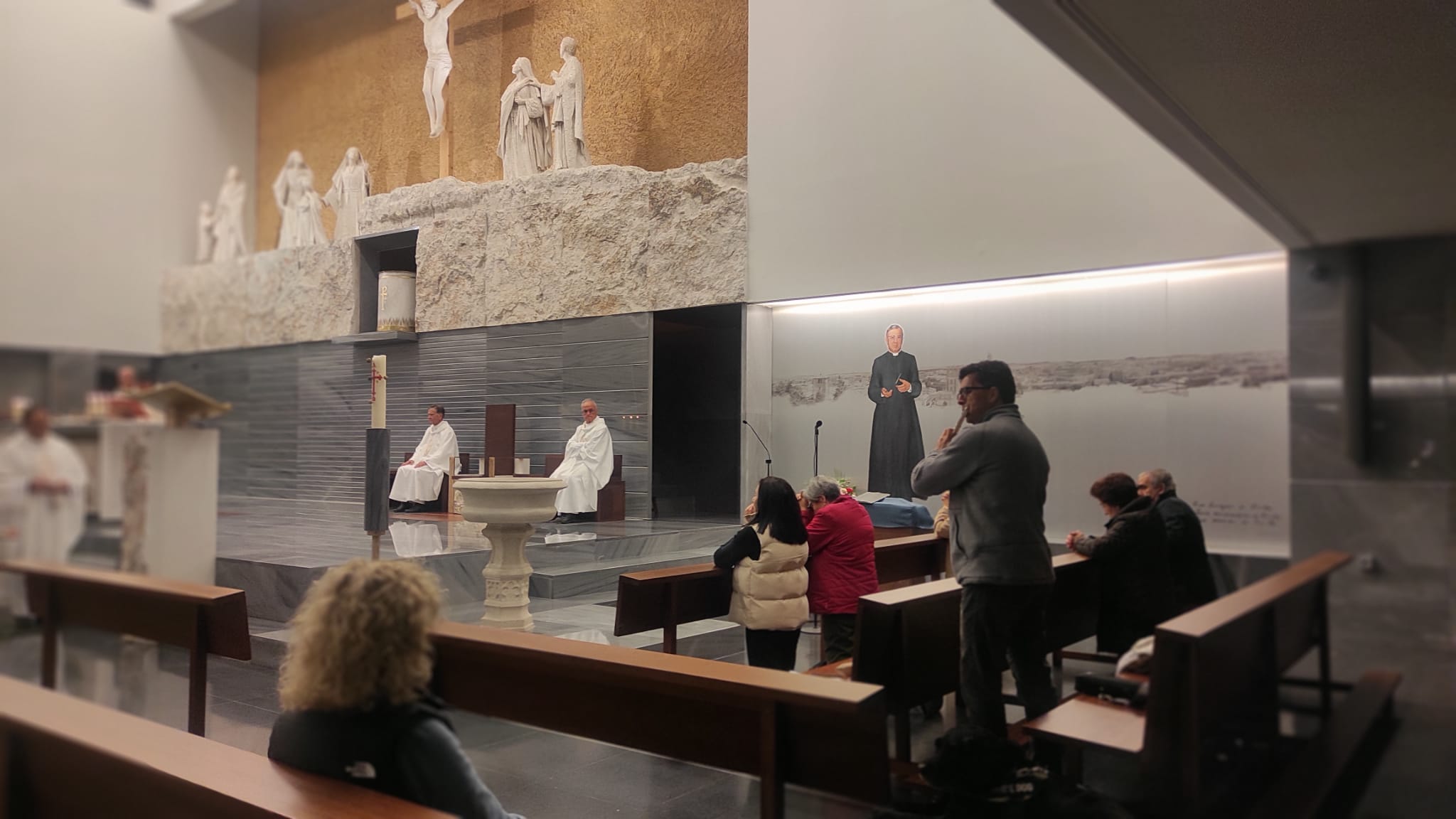 - El mismo día, en el salón de actos de nuestra parroquia se presentó una obra de teatro, organizada por el Seminario Redemptoris Mater. Recreaban la historia de la Aparición de la Virgen de Guadalupe al indio Juan Diego.