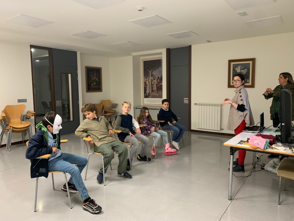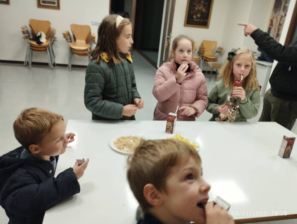 Cada primer viernes de mes los pequeños de casa tienen la ocasión de hacer unos minutos de Adoración delante del Santísimo. Después pasamos a los salones para tener una merienda.