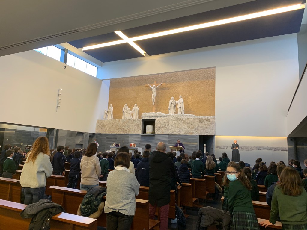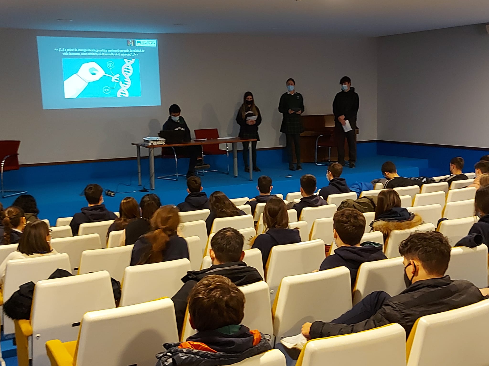 Un año más, alumnos de 2º BACH de los colegios Campolara y Sagrada Familia han estado recibiendo charlas impartidas por destacados profesionales de ámbitos de especial actualidad, dentro del Programa Excellence de la Universidad de Navarra. A estas alturas, ya están preparando los trabajos que defenderán por grupos en esta universidad. El jueves 10 estuvieron en la parroquia haciendo los ensayos de las presentaciones. Adjuntamos algunas fotos.
